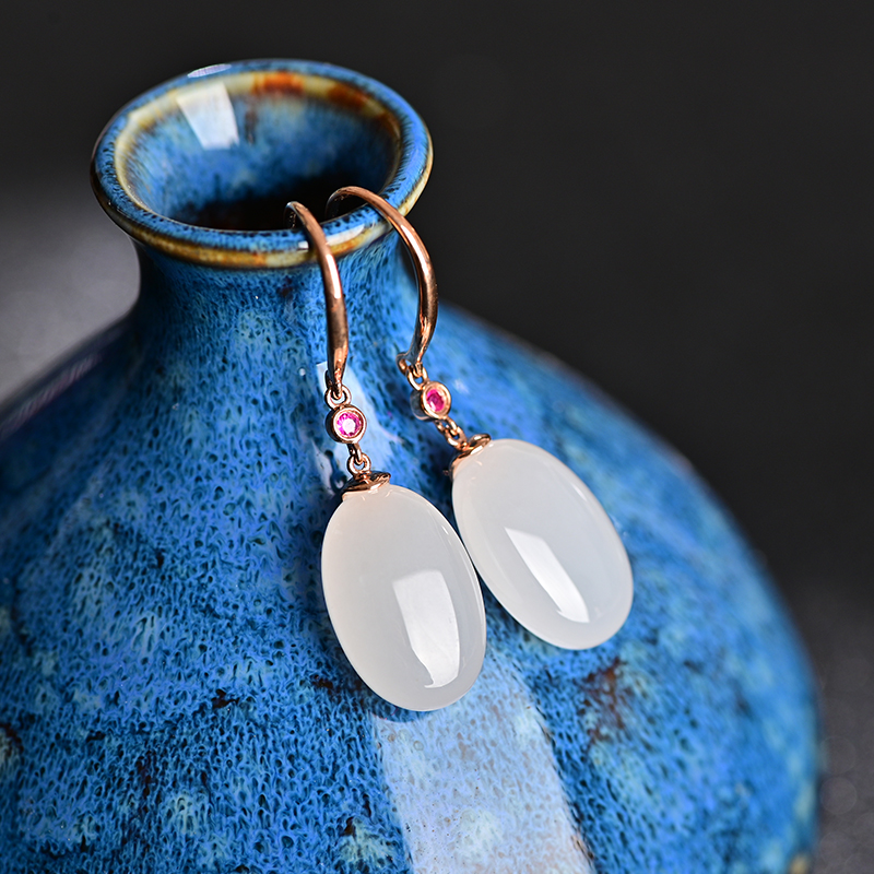 玉柔颜白玉金镶耳饰