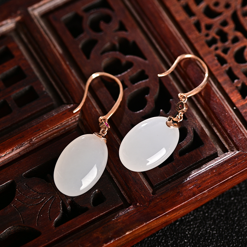 和田白玉金镶耳饰
