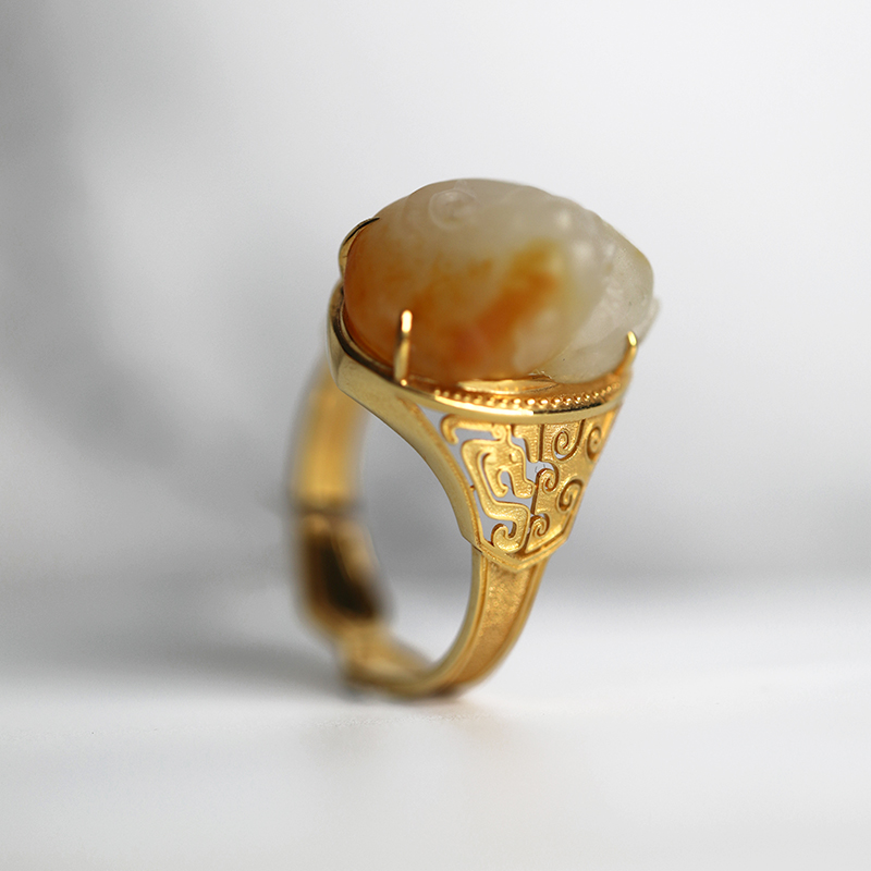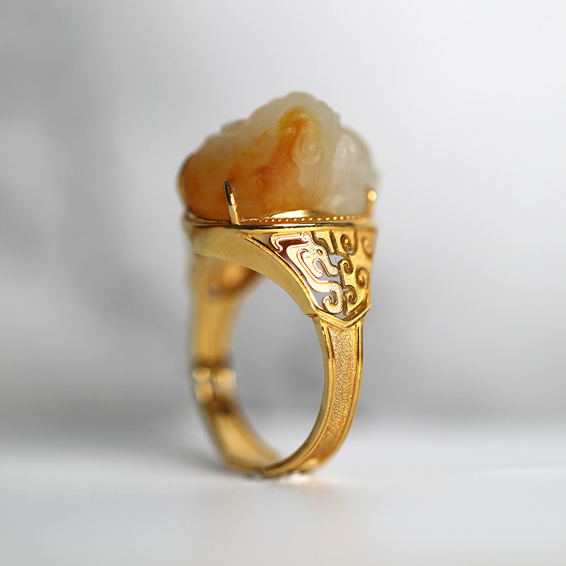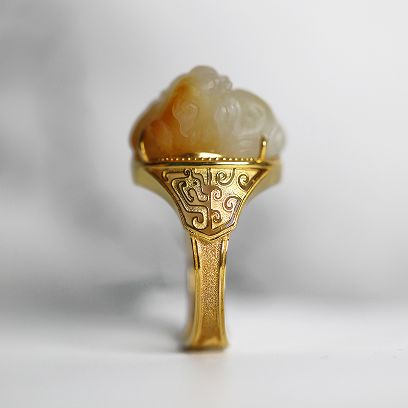 玉雕瑞兽,镶嵌金线龙纹破浪而出,暗喻“潜龙入渊,待时而动”,呼应帝王御宇之威