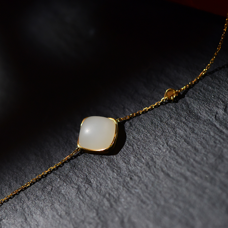 白玉方糖金镶手链