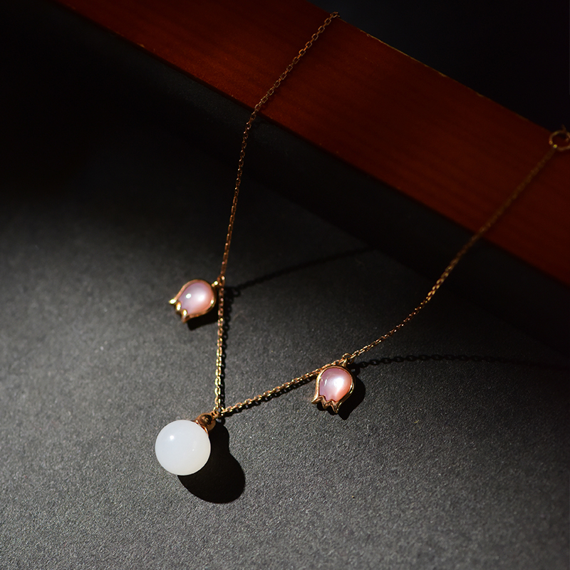 芙蓉花白玉金镶手链